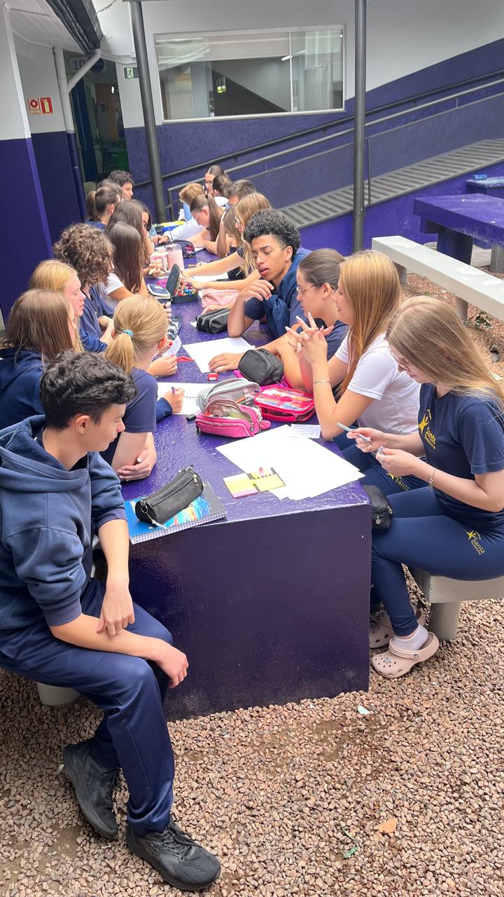 Mais do que pensar em lucro, a dinâmica convidou os alunos a refletirem sobre inovação, propósito e iniciativa, habilidades importantes para a construção de seus caminhos pessoais e profissionais.