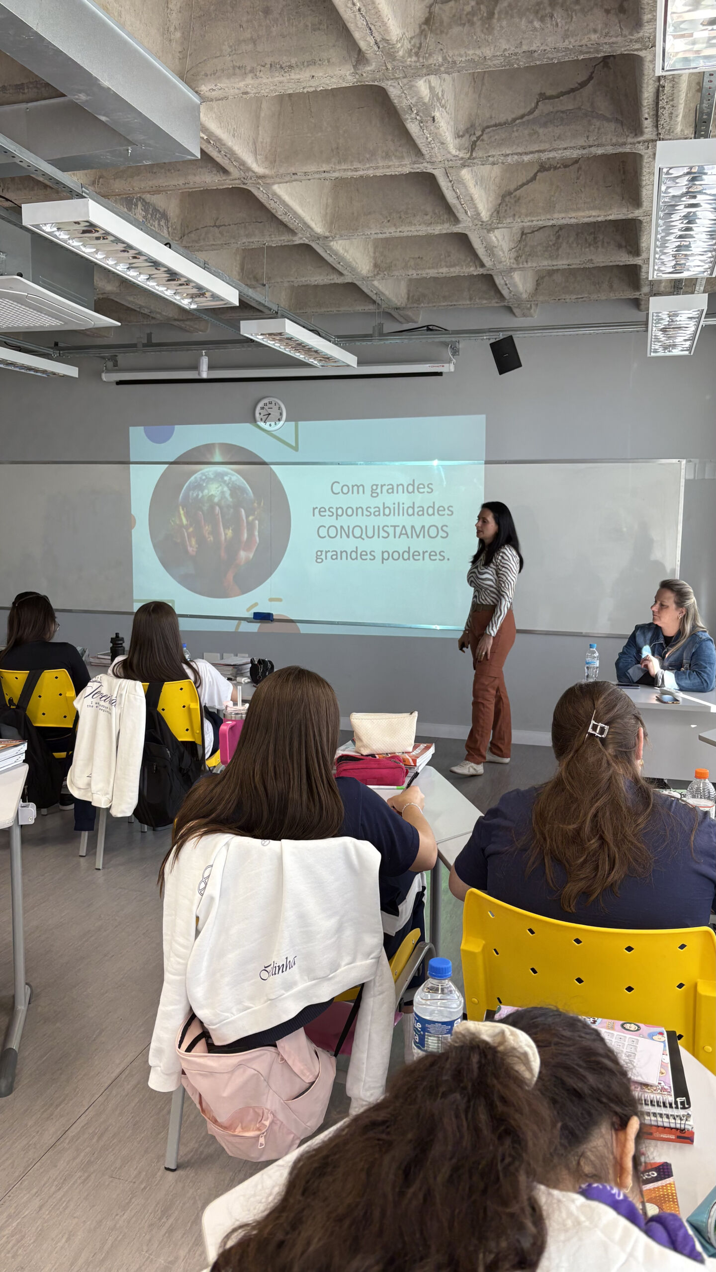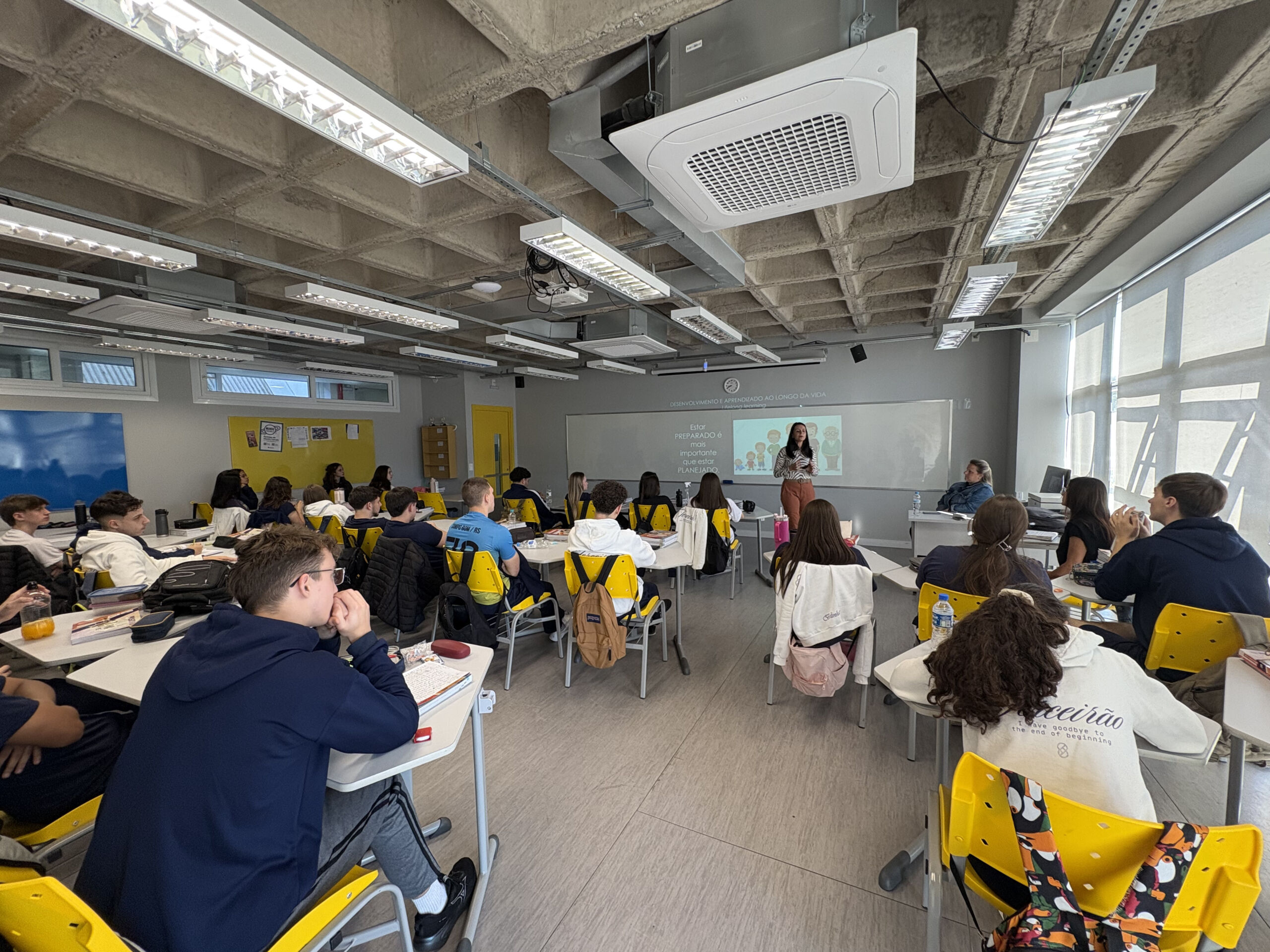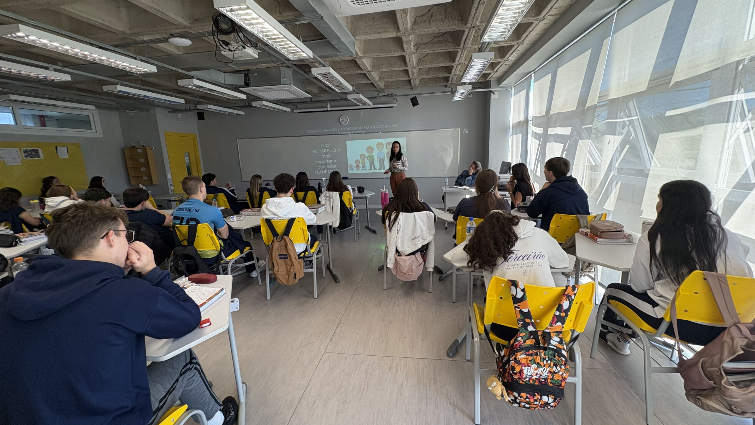 Durante a Semana das Profissões, nosso Terceirão participou de uma palestra especial com o Sicredi, conduzida por Paula Dal Castel Becker. O tema, “Ressignificando a relação com o trabalho”, trouxe reflexões importantes sobre como enxergar o futuro profissional de forma mais consciente, equilibrada e alinhada aos valores pessoais. Foi um momento de aprendizado e inspiração, que contribuiu para ampliar a visão dos alunos sobre carreira e escolhas no mundo do trabalho.